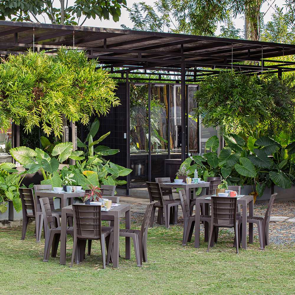 The Barú Table, with its wood-like appearance, effortlessly combines simplicity and elegance. Inspired by natural textures, it creates a sense of tranquility, relaxation, and harmony, making it the perfect addition to your home, farmhouse, or office. Crafted from durable, water-resistant resin, this table is built to last. It also features a convenient umbrella hole, allowing you to easily add shade on sunny days, enhancing both comfort and functionality. Additionally, the table is equipped with adjustable feet, offering you the flexibility to level it for added stability on uneven surfaces.